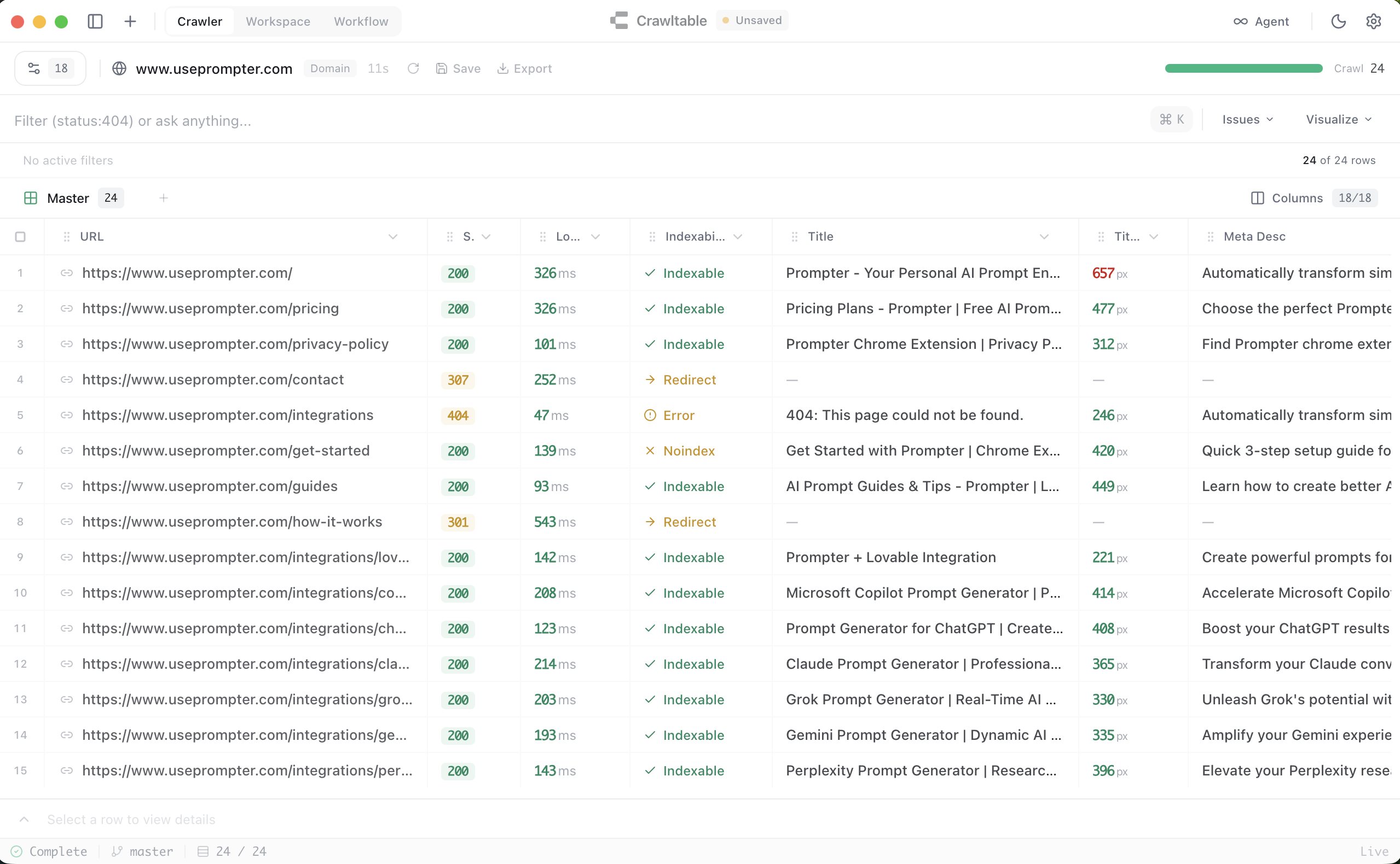 Screaming Frog is an excellent crawler — and PageBrain shares that same deep crawling foundation. The difference is what happens after the crawl. AI agents that query your data in plain English, an audit builder that generates client-ready reports, and fix workflows that turn findings into action — all in one place.